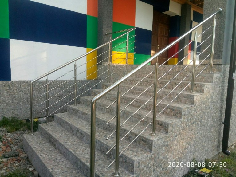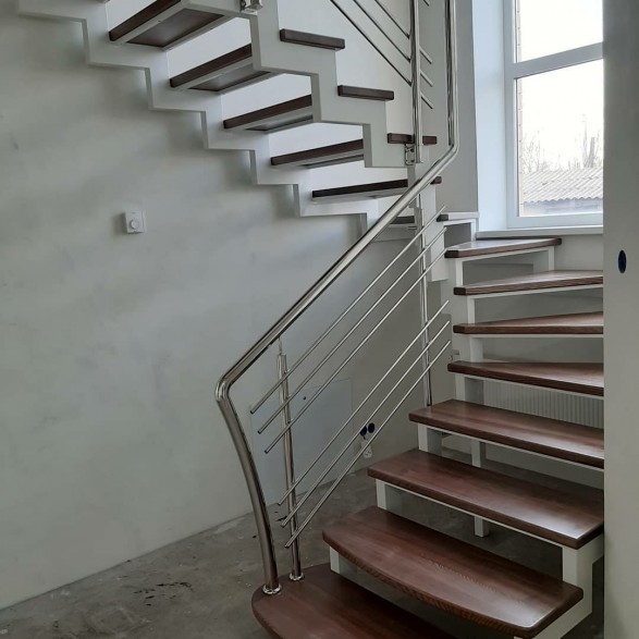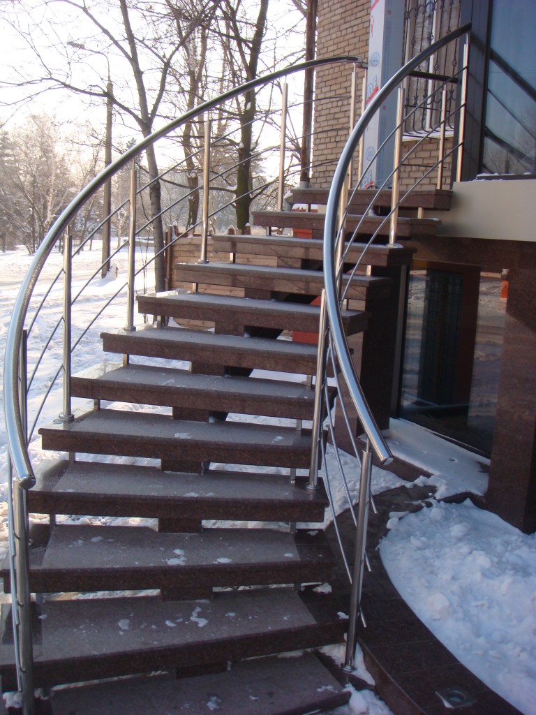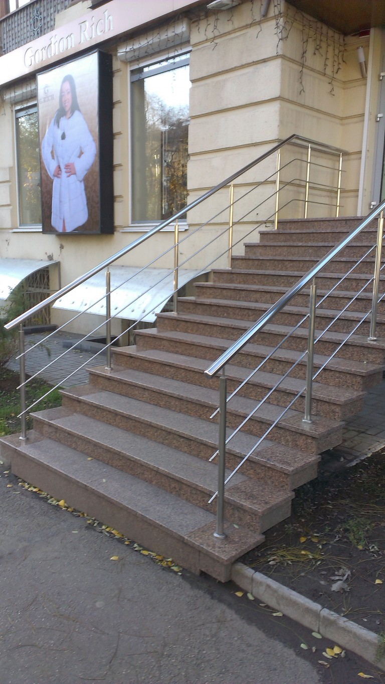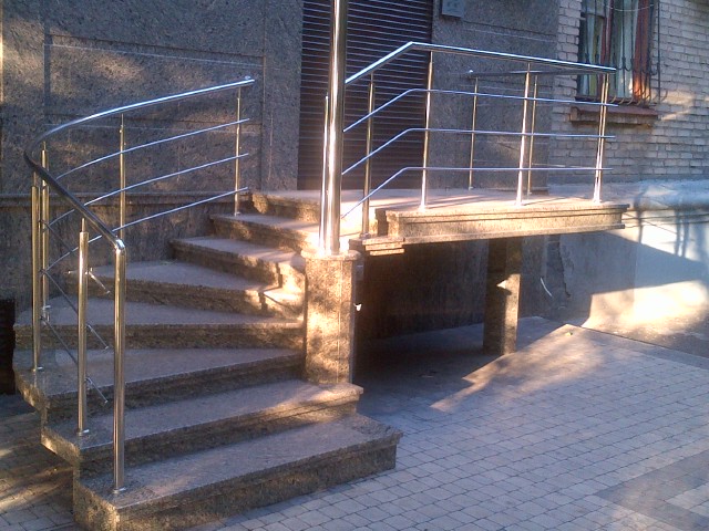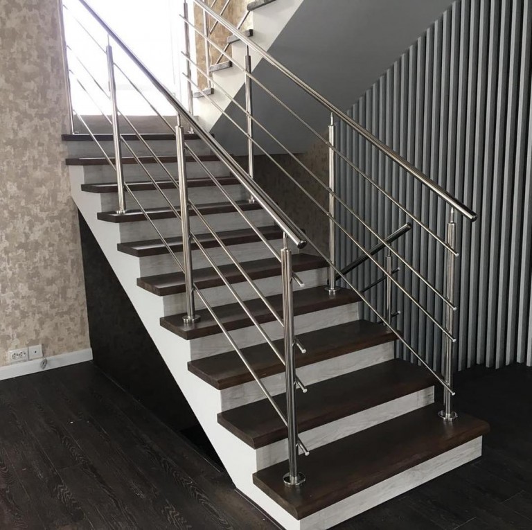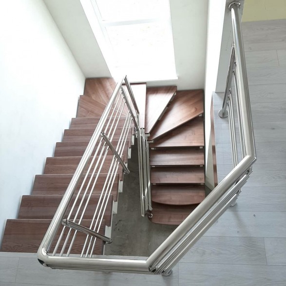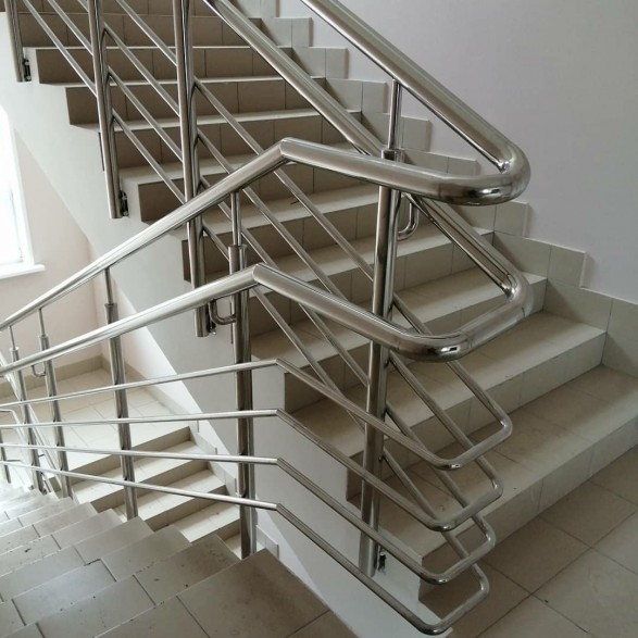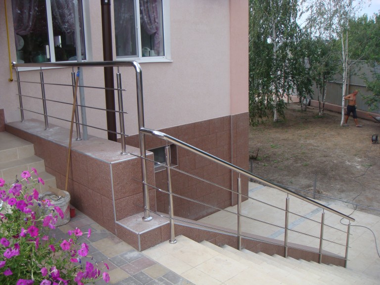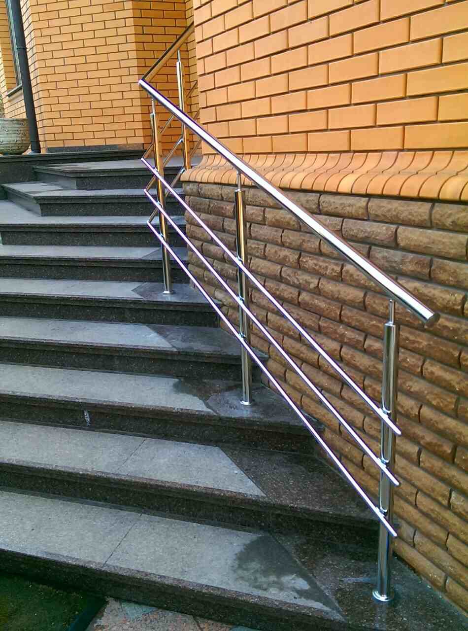 Круглі нержавіючі поручні – найпопулярніші. Поручні з круглим нержавіючим поручнем можна встановити на будь-яких сходах від простої маршової до найкрученішої-перекрученої, і на будь-якому навіть самому радіусному балконі або ганку