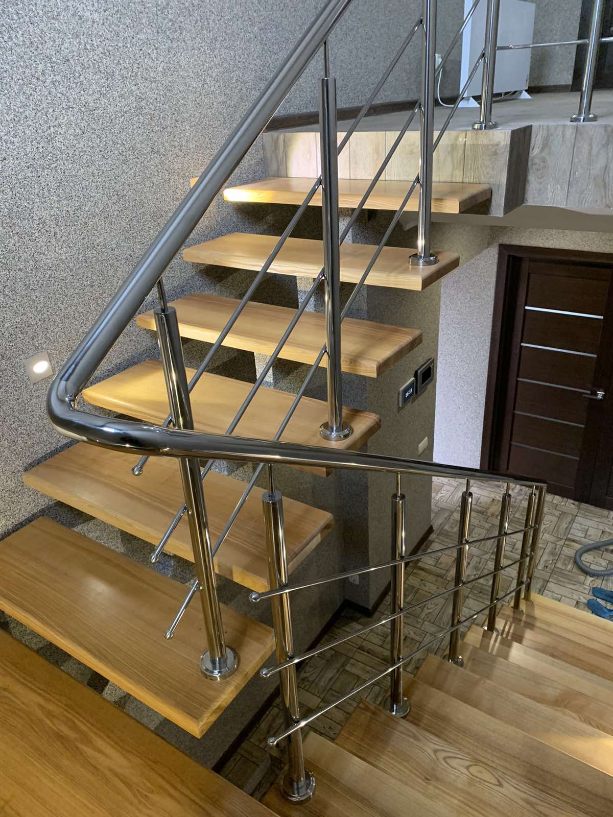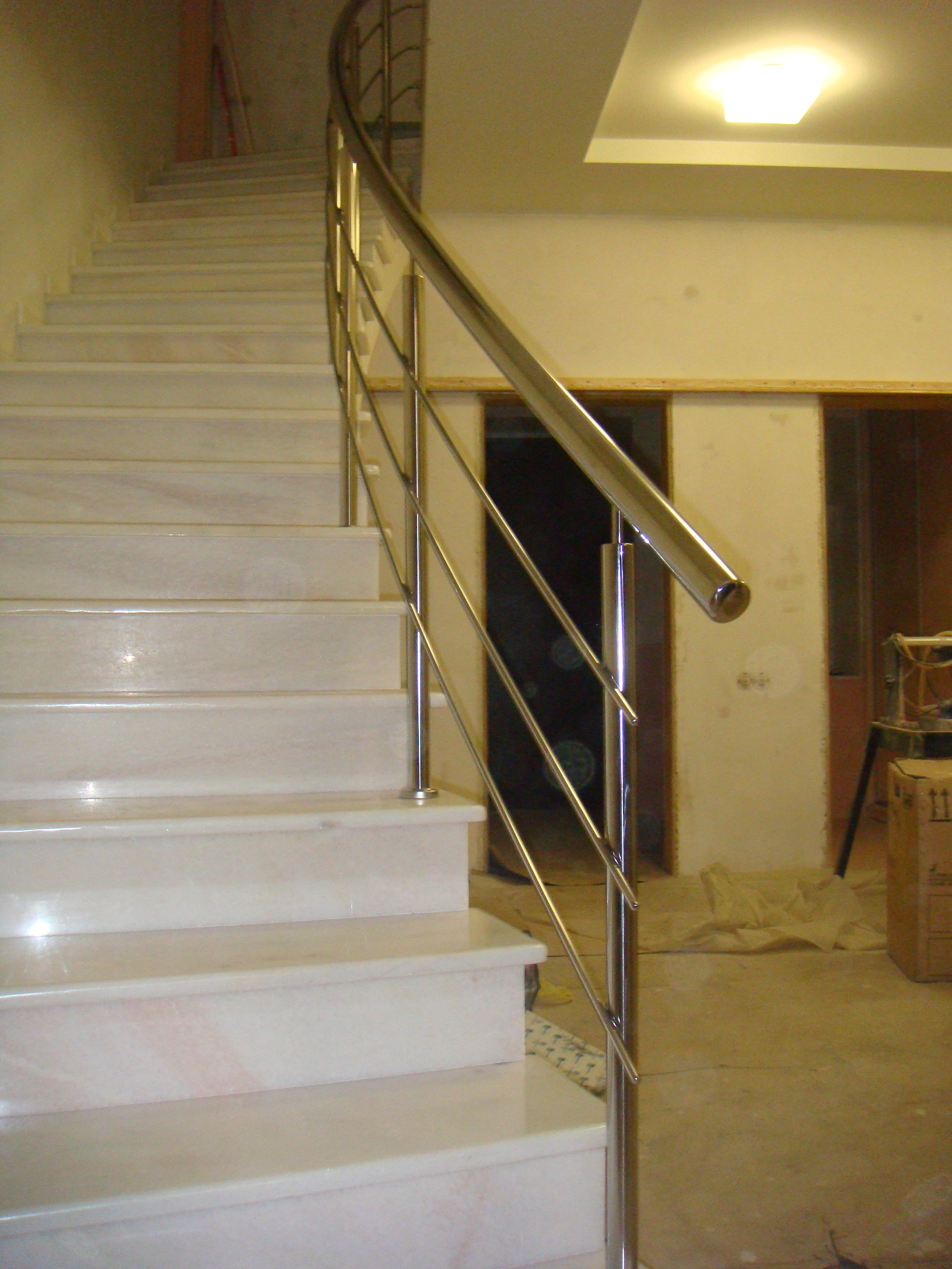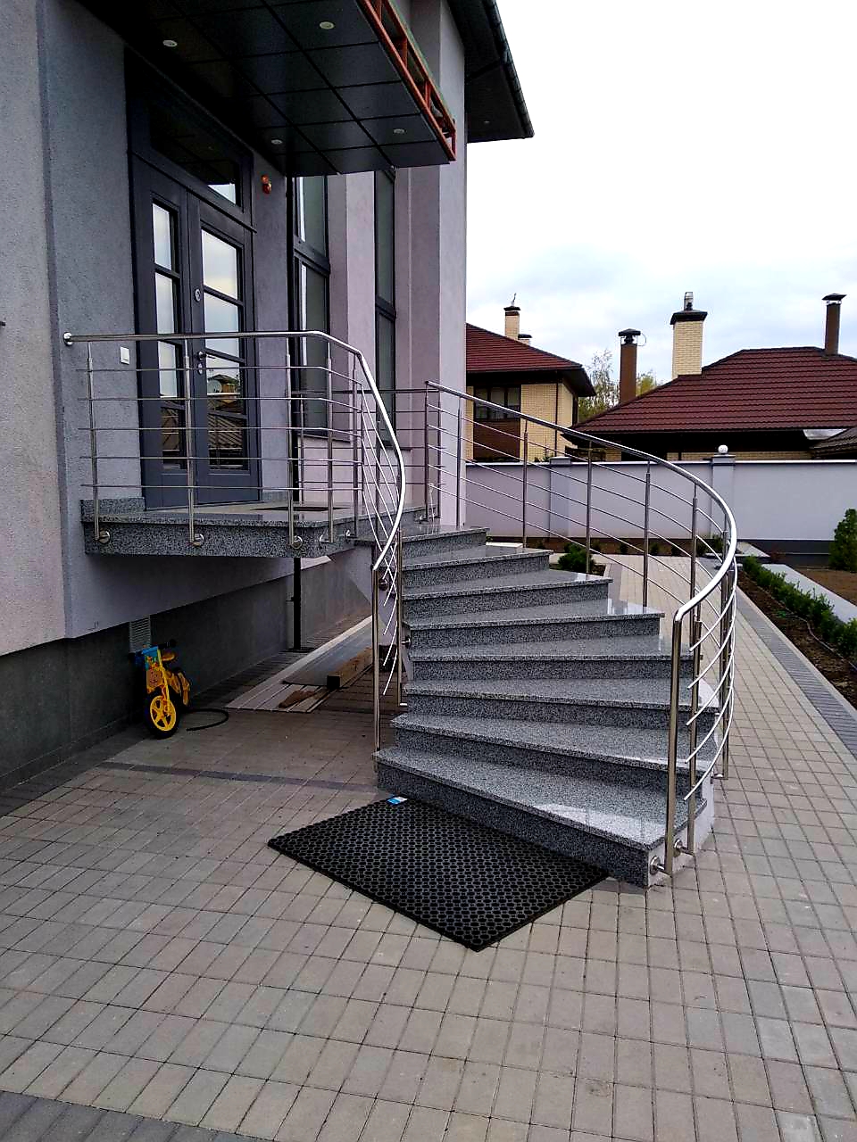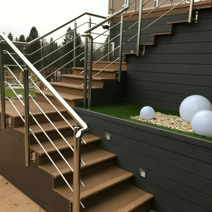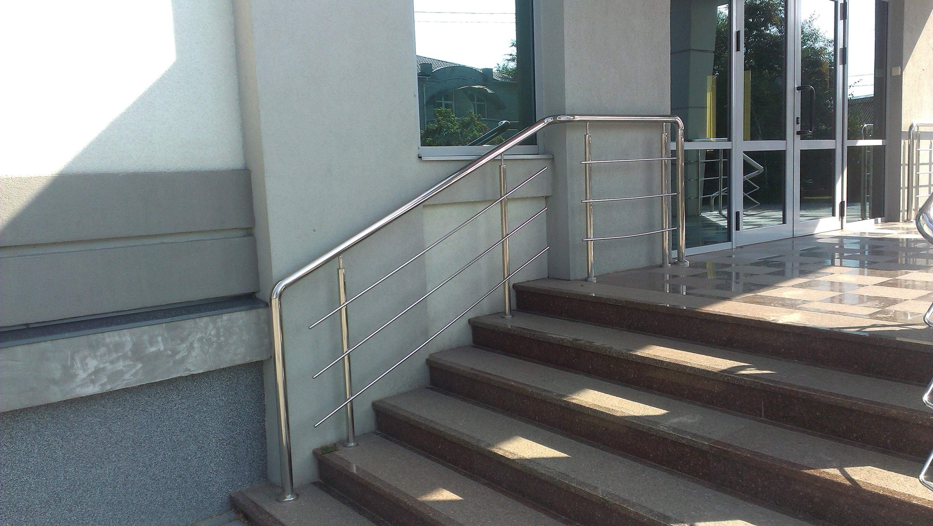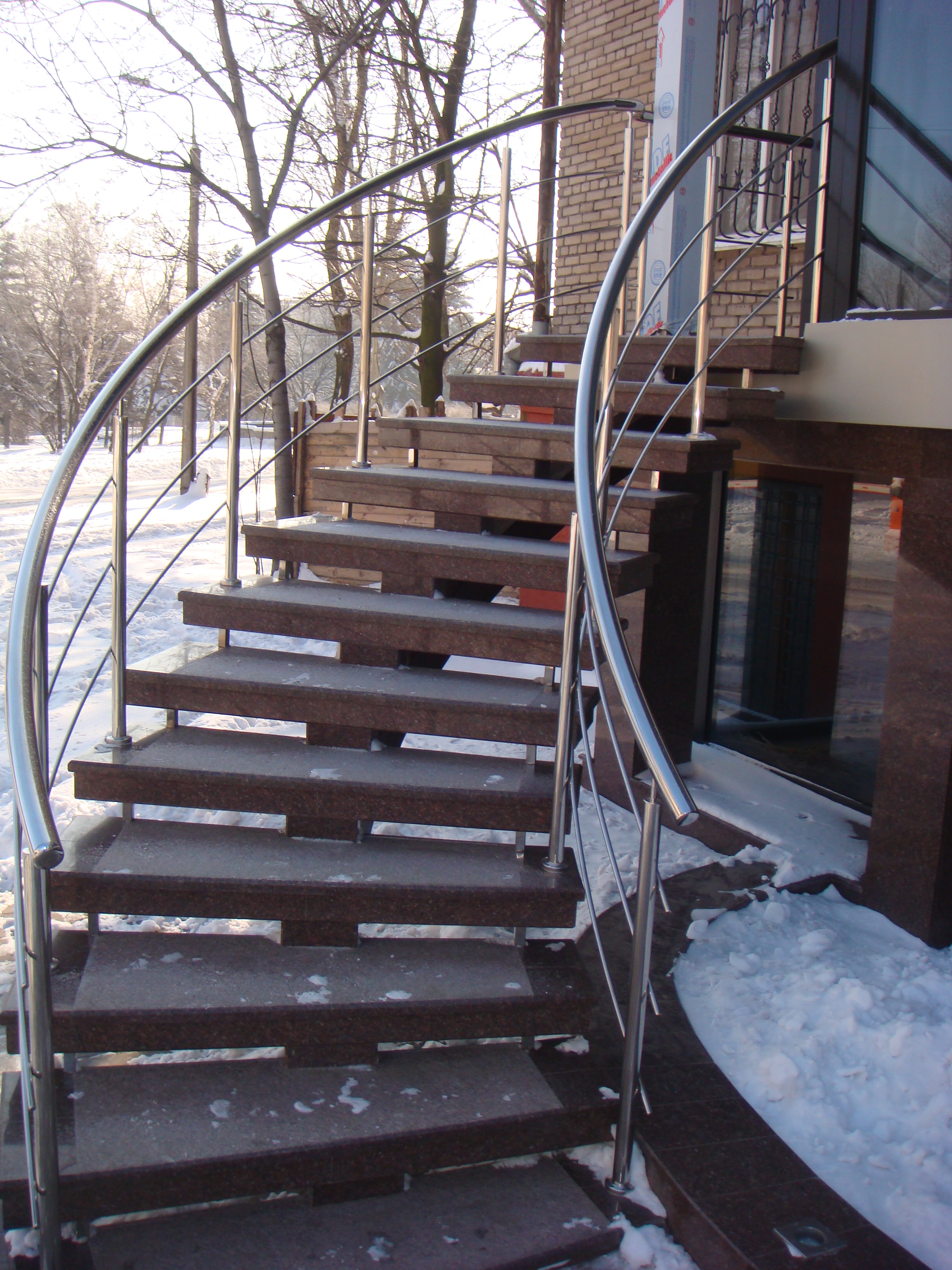 Круглі нержавіючі поручні – найпопулярніші. Поручні з круглим нержавіючим поручнем можна встановити на будь-яких сходах від простої маршової до найкрученішої-перекрученої, і на будь-якому навіть самому радіусному балконі або ганку